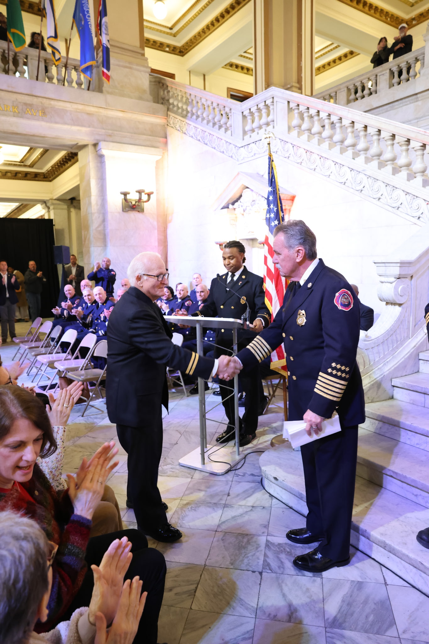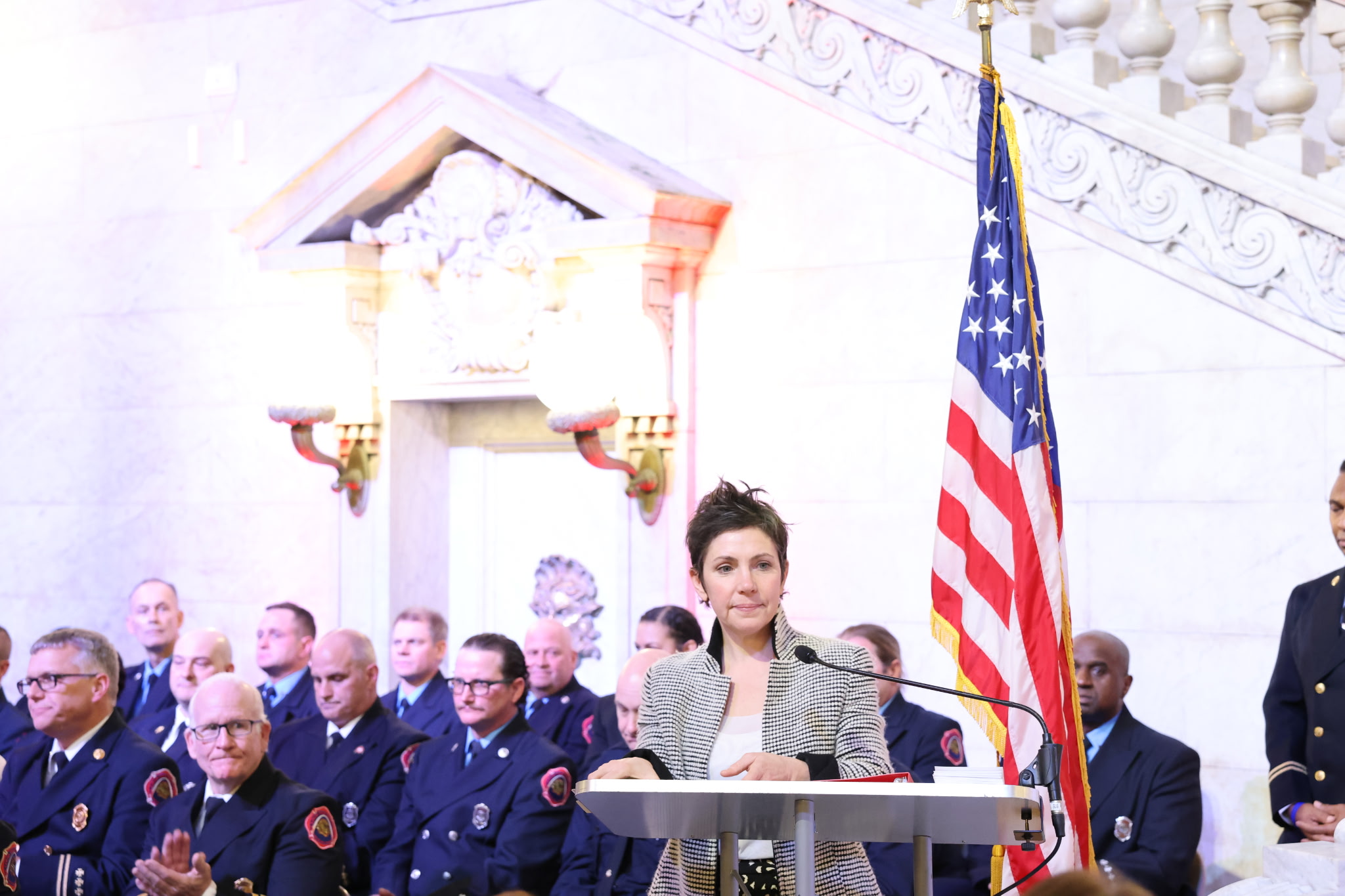 Returning to the scene of the crime, so to speak, the City and the Department hosted promotions for 8 Battalion Chiefs and 19 Captains today in the Rotunda at City Hall. Mayor Cara Spencer thanked the firefighters and acknowledged the long overdue promotions: “I am grateful for the vital work that you do every day, the dangerous work that you do every day, and the important work that you do every day. I know that it isn't easy. Each of you have earned this promotion a long time ago. You've worked hard, you risked your lives, your health and well-being, and you've proven yourselves as leaders.”